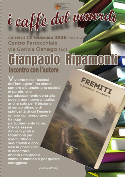 Venerdì 13 febbraio 2026 alle ore 21:00 presso il Centro Parrocchiale in via Gorizia ad Osnago (Lecco) si terrà la presentazione del libro «Fremiti» di Gianpaolo Ripamonti